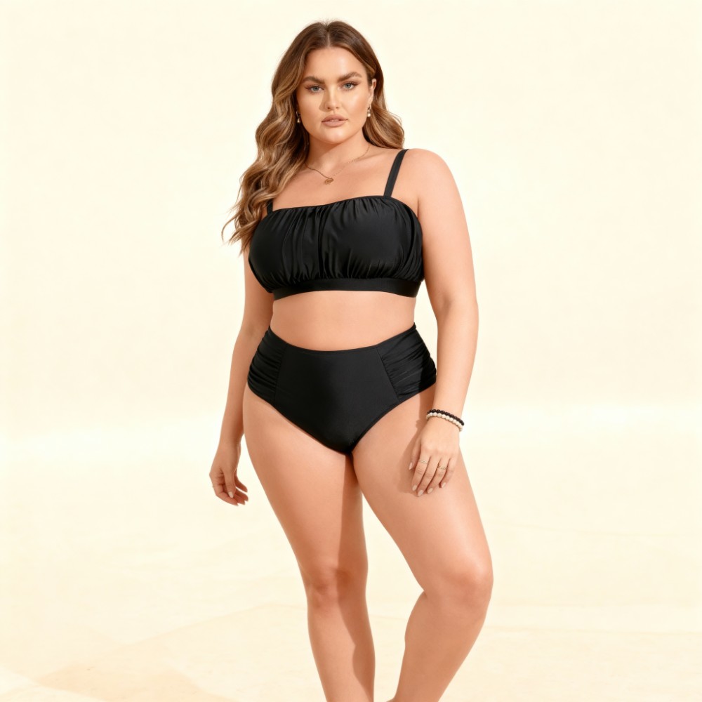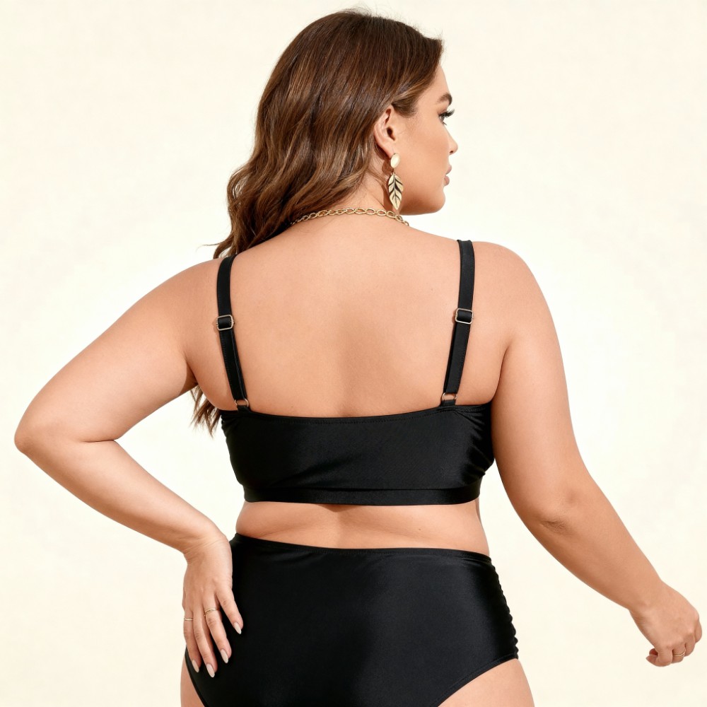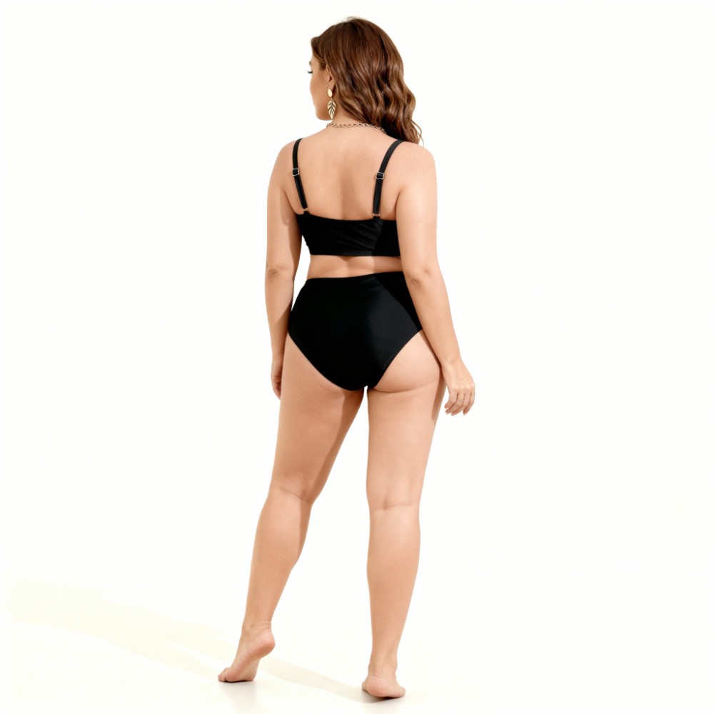 Черный раздельный купальник Plus Size с высокой посадкой и мягкими сборка 434-04