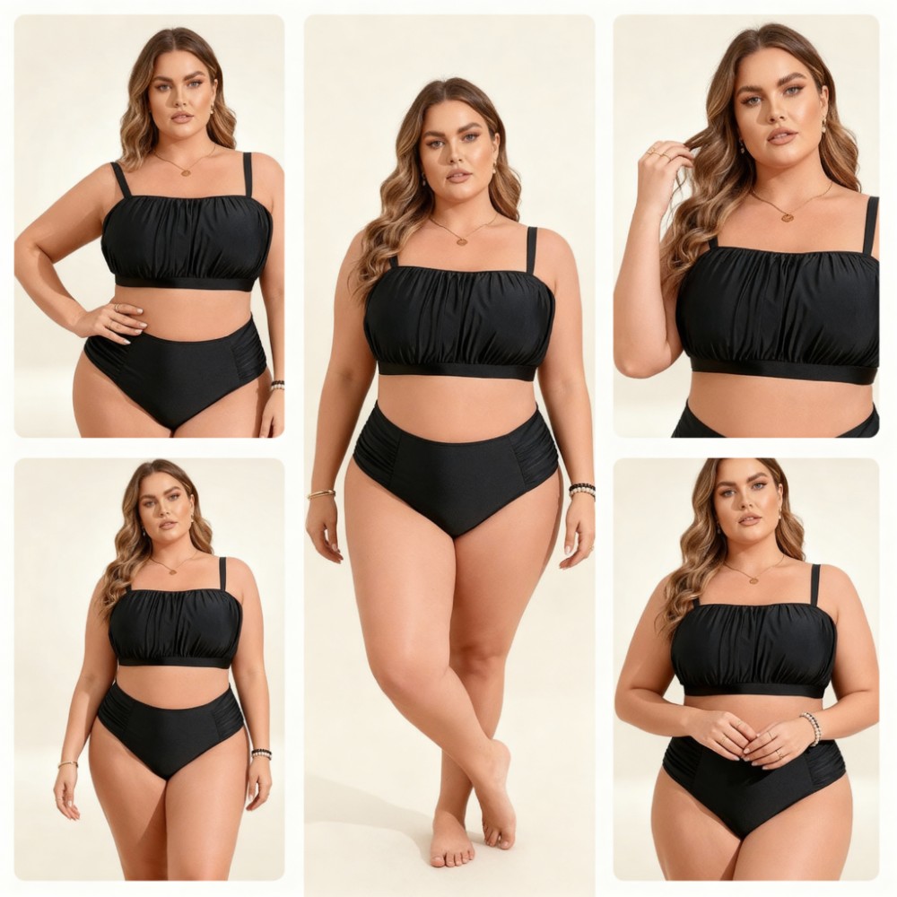 ✅ Тип: Раздельный купальник Plus Size (лиф + плавки high-waist)