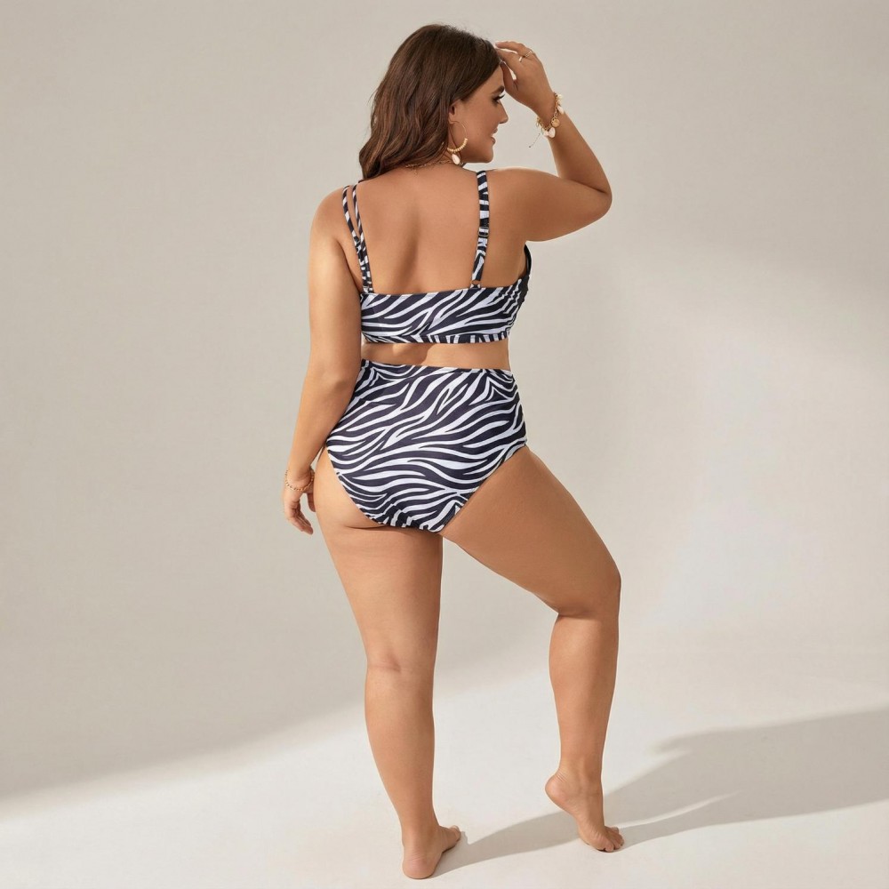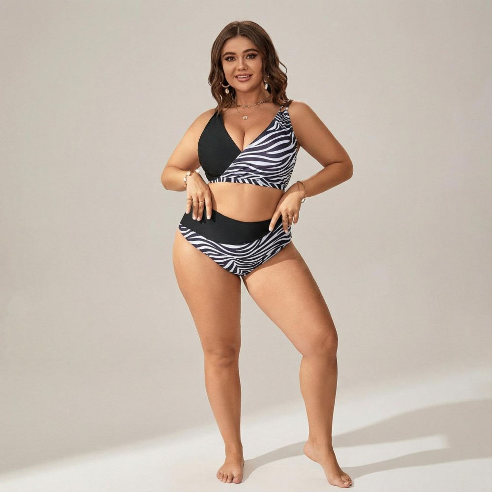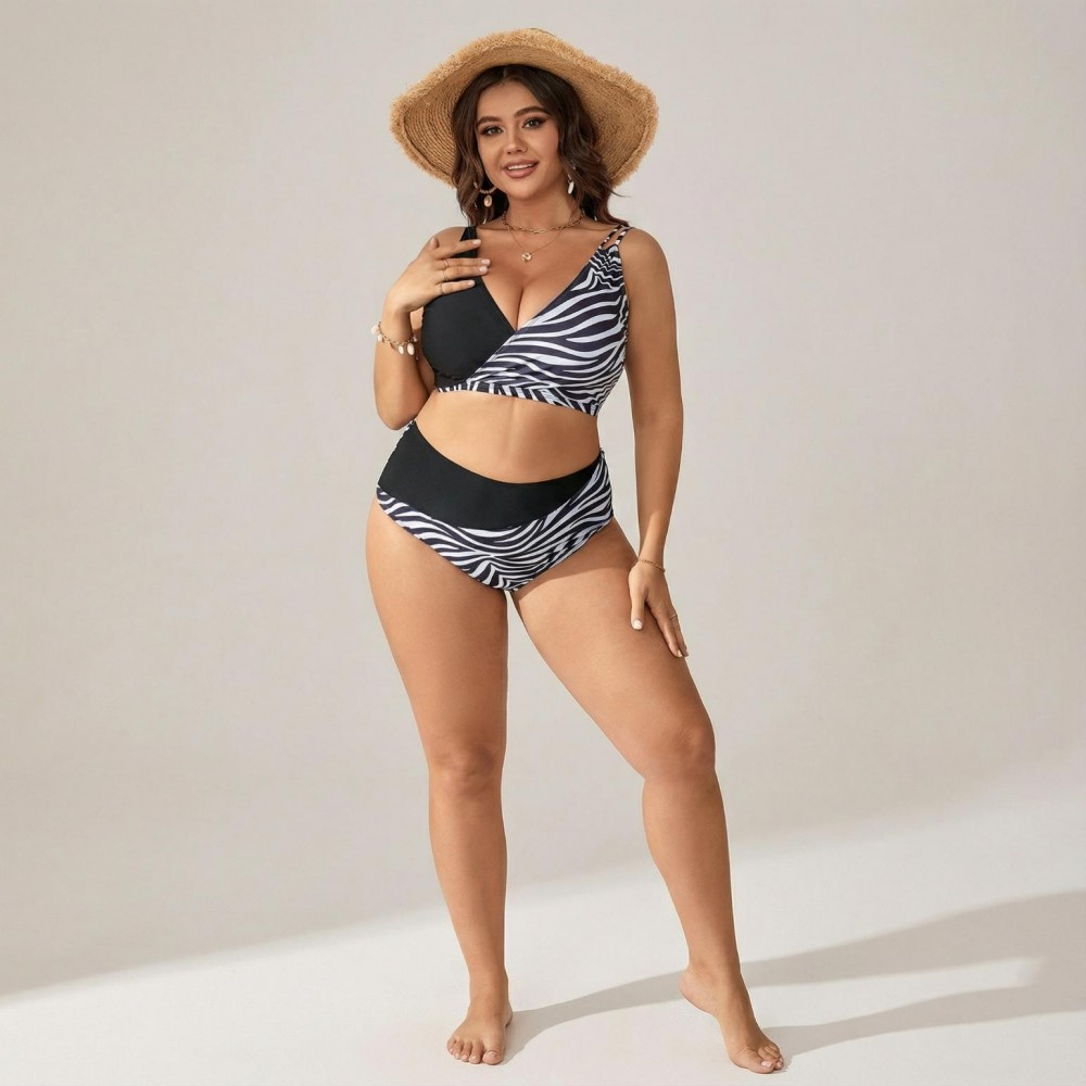 Купальник раздельный колор-блок зебра черно-белый Plus Size 436-04-K