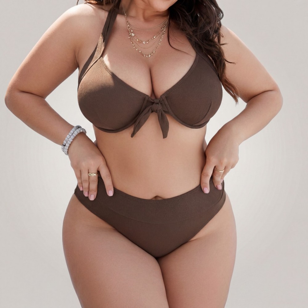 Стильный раздельный купальник Plus Size в благородном шоколадном оттенке подчёркивает загар и создаёт элегантный пляжный образ. Лиф с мягкими чашками и завязкой спереди красиво формирует линию декольте и позволяет регулировать посадку. Широкие бретели обеспечивают комфорт и поддержку, а плотная эластичная ткань с лёгкой фактурой мягко облегает фигуру. Плавки средней посадки с широким поясом удобно сидят на талии и подчёркивают силуэт. Идеальный вариант для отдыха у моря, бассейна и курортных фотосессий.