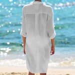 Эта элегантная пляжная туника-рубашка белого цвета изготовлена из лёгкой, полупрозрачной ткани, которая идеально подходит для жаркого лета и отдыха у моря. Она выполнена в классическом стиле, напоминая удлинённую рубашку, что делает её одновременно простой и стильной.