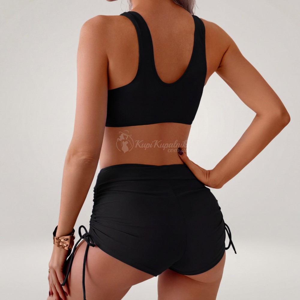 Этот чёрный раздельный купальник с шортиками станет отличным выбором для женщин, которые ценят комфорт, практичность и лаконичный стиль в пляжной одежде.