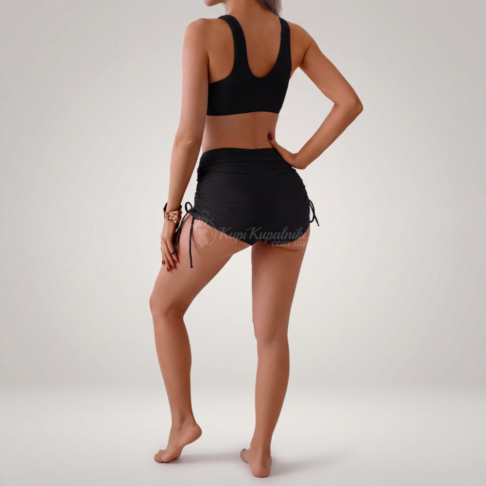 Раздельный купальник чёрный с шортиками и утягивающей посадкой 174-31