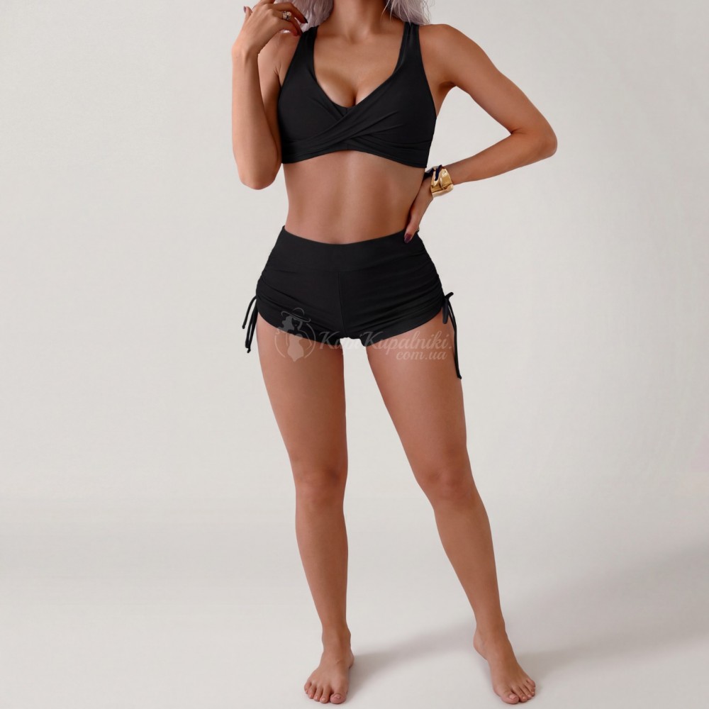 Раздельный Чёрный Купальник | Топ с Запахом | Плавки-Шортики с Кулиской