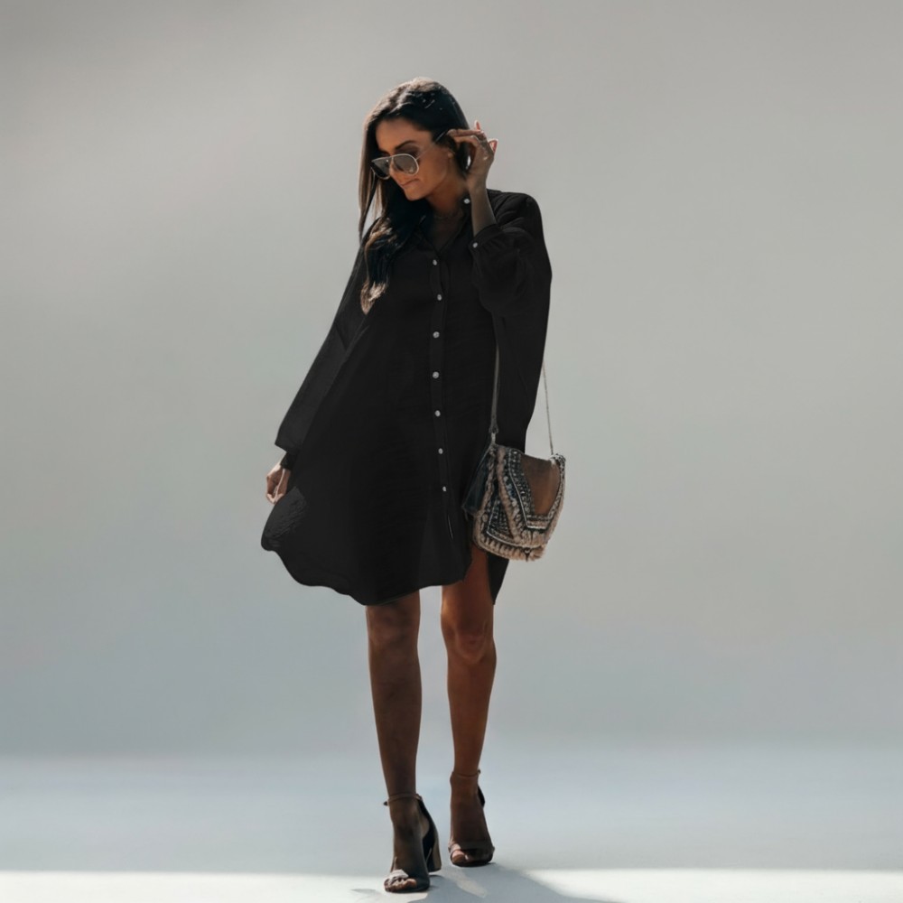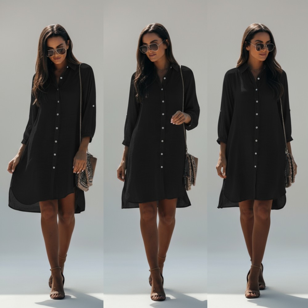 Женская пляжная рубашка чёрного цвета с длинным рукавом — универсальный выбор для жаркого лета и стильного отдыха