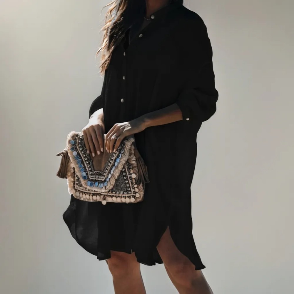 Эта сорочка станет неотъемлемой частью вашего летнего гардероба — лёгкая, выразительная и невероятно удобная.