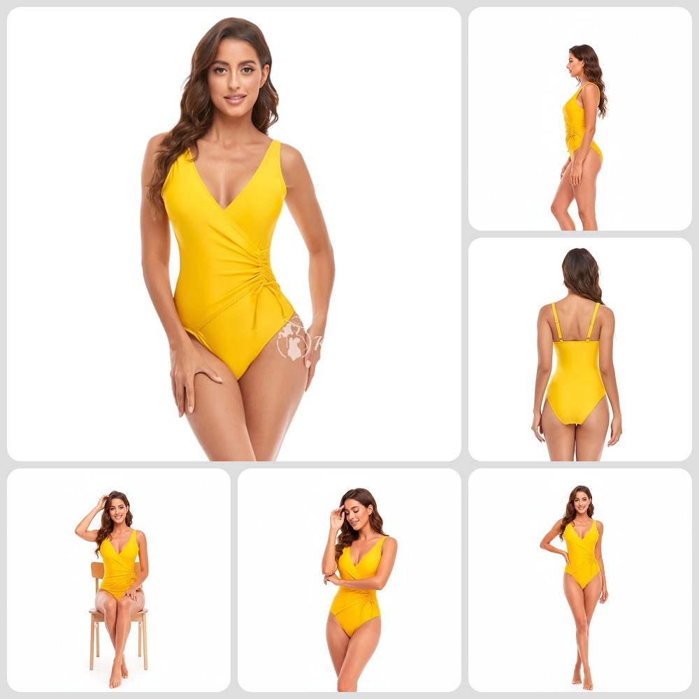 Слитный купальник в ярко-жёлтом цвете — универсальная и элегантная модель для пляжа и бассейна. Глубокий V-вырез красиво подчёркивает декольте, широкие регулируемые бретели дают надёжную поддержку, а боковая драпировка на шнурке (с одной стороны) мягко оформляет талию и визуально стройнит зону живота. Плотная эластичная ткань с подкладкой не просвечивает и быстро сохнет.