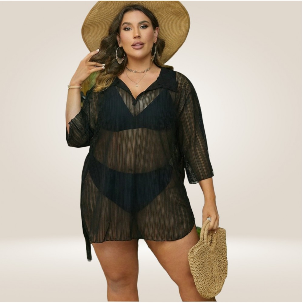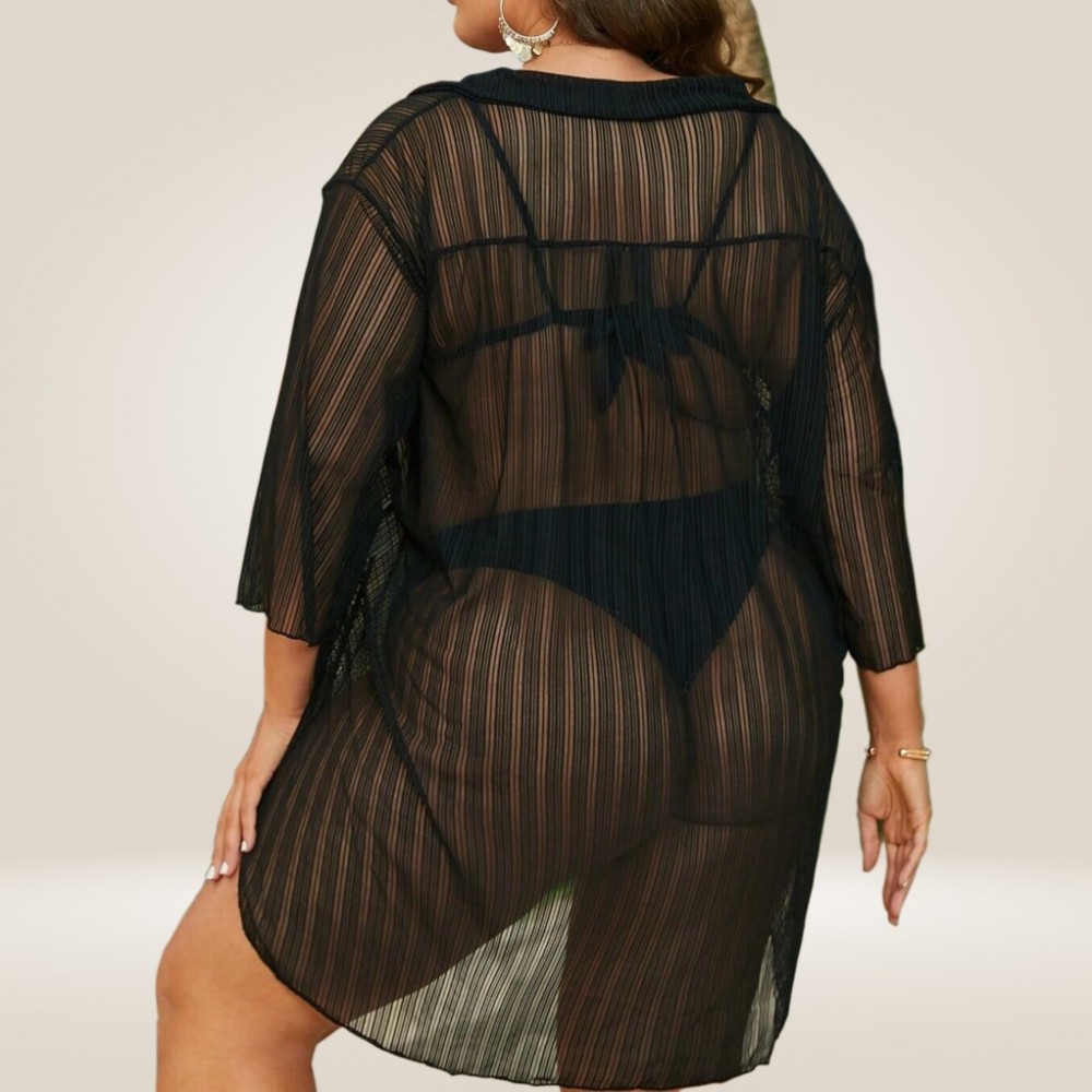Полосатая Sheer Туника Oversize | Стрейч-Тюль с Прозрачным Эффектом | Стильный Пляжный Лук