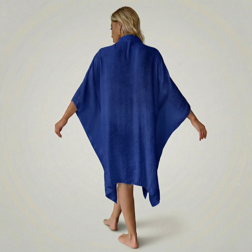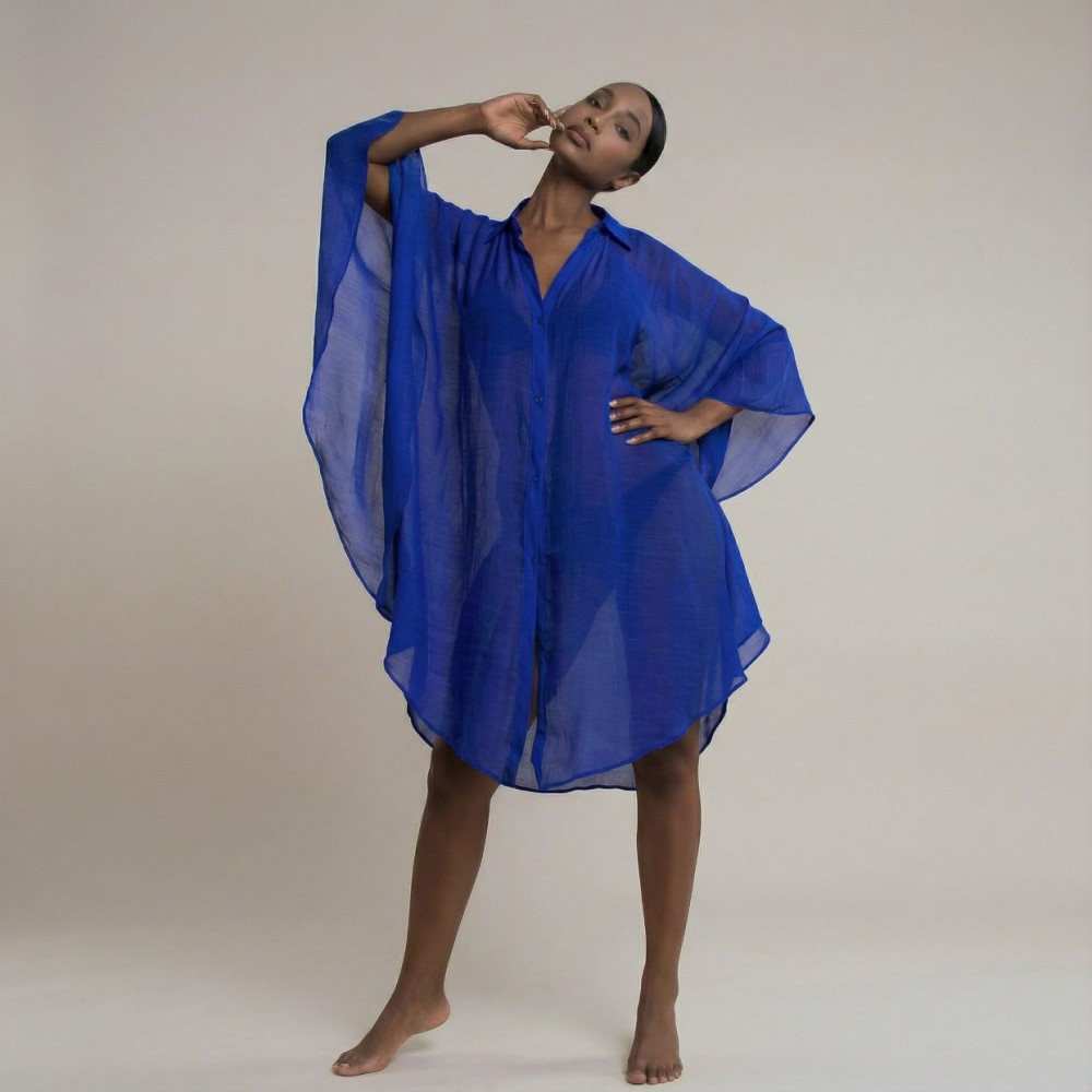 Элегантная Туника-Рубашка Оверсайз | Стильная Пляжная Накидка | Синее Свободное Платье Стильная синяя туника оверсайз с широкими рукавами — идеальное сочетание элегантности и комфорта для летнего отдыха. Натуральная вискоза создает невероятное ощущение легкости и прохлады даже в самую жаркую погоду, а просторный крой обеспечивает максимальную свободу движений. Универсальный дизайн с застежкой на пуговицы и свободным силуэтом делает эту тунику незаменимой вещью для пляжа, прогулок и отдыха. Характеристики: ✅ Материал: натуральный штапель (100% вискоза) ✅ Размер: One Size (универсальный) ✅ Длина: средняя, выше колена ✅ Посадка: свободный крой оверсайз ✅ Рукав: широкие короткие рукава ✅ Детали: застежка на пуговицы, отложной воротник, асимметричный низ, боковые разрезы ✅ Цвет: синий Преимущества модели: ✅ Ткань с эффектом прохлады — идеальна для жаркой погоды, не парит тело ✅ Натуральный состав (100% вискоза) — кожа дышит и остается свежей весь день ✅ Свободная посадка оверсайз — комфорт для любой фигуры, деликатно скрывает недостатки силуэта ✅ Универсальный размер — подходит на разные типы фигур ✅ Широкие рукава — обеспечивают дополнительную вентиляцию и свободу движений ✅ Застежка на пуговицы — можно носить расстегнутой как накидку или застегнутой как платье ✅ Асимметричный низ — добавляет динамику и стиль образу ✅ Черный цвет — универсален, стройнит силуэт и легко комбинируется ✅ Легкая и невесомая — удобно носить весь день и брать в путешествие ✅ Рекомендуется деликатная стирка при 30°C для сохранения формы и мягкости ткани Эта синяя туника оверсайз станет универсальной вещью для летнего гардероба — носите как пляжную накидку на купальник, как свободное платье для прогулок или комфортную домашнюю одежду. Элегантный синий цвет и просторный крой создают расслабленный и стильный образ в стиле минимализм. Код товара: 405-97-2