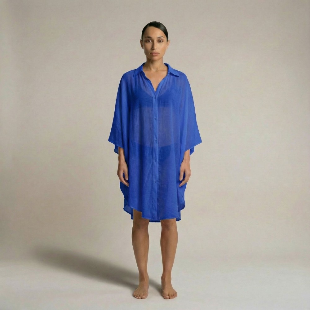 Туника женская пляжная из вискозы Синяя Оверсайз One Size 405-97-2-K