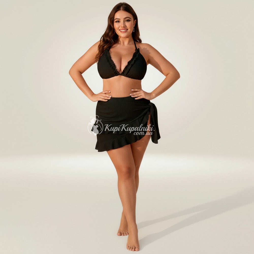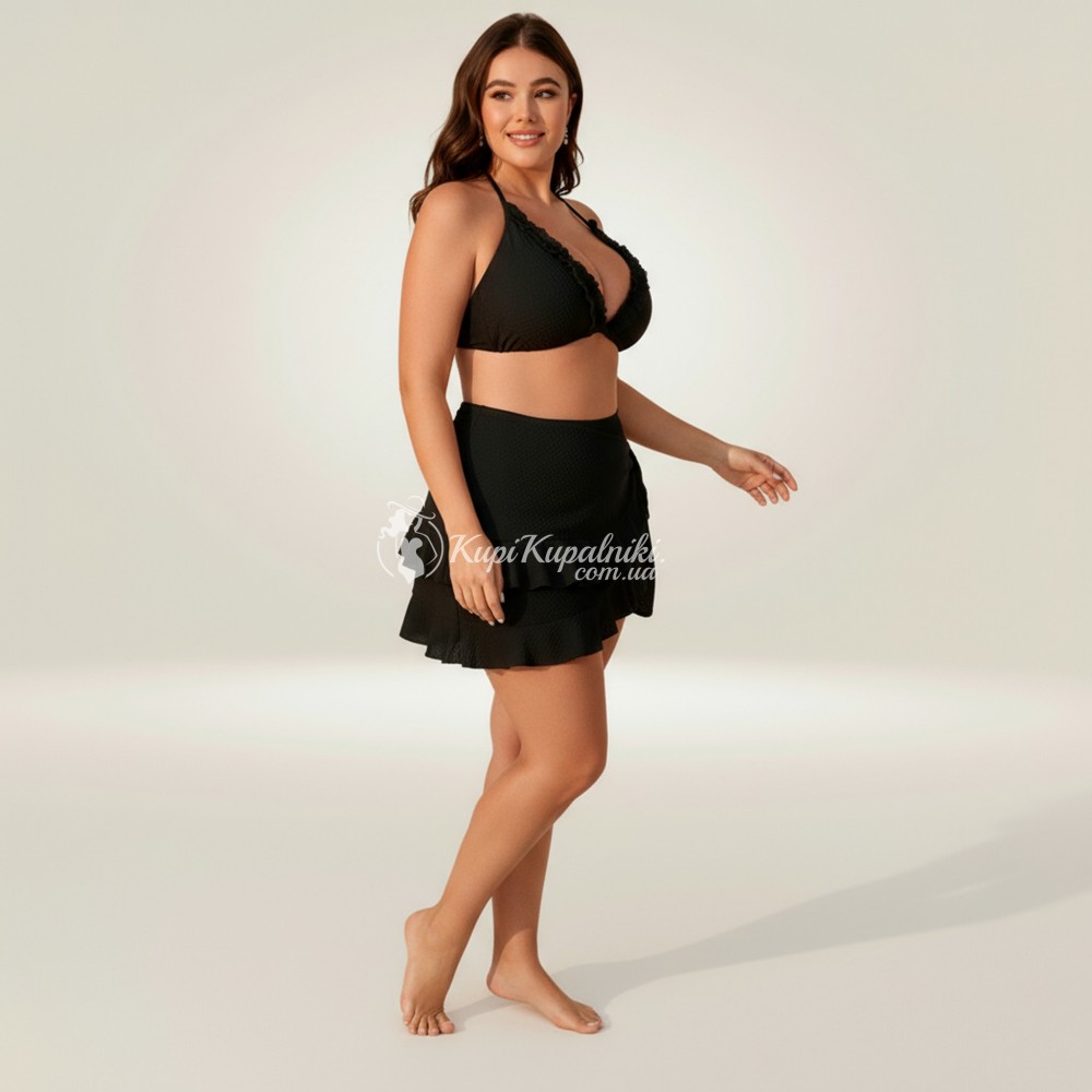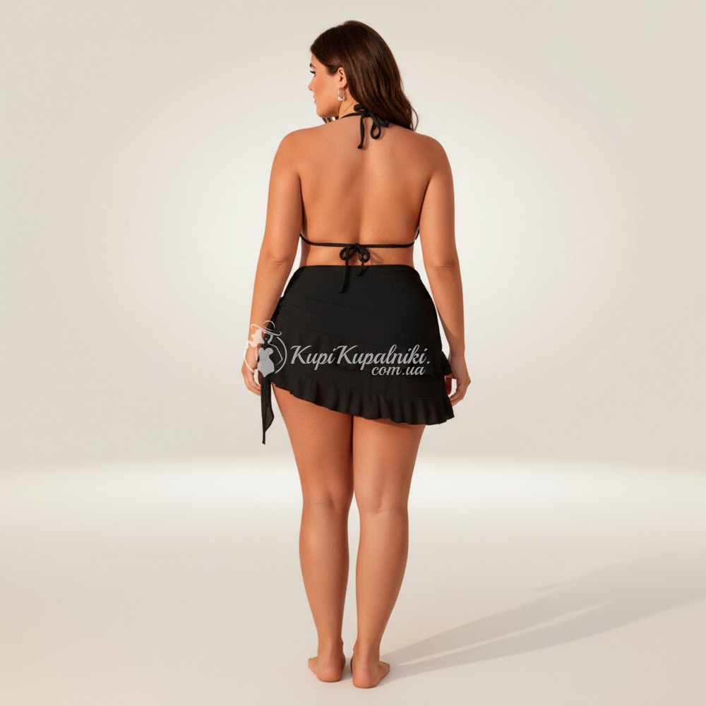 Чорний бікіні Plus Size з воланами та парео-спідницею, висока талія 433-03-2