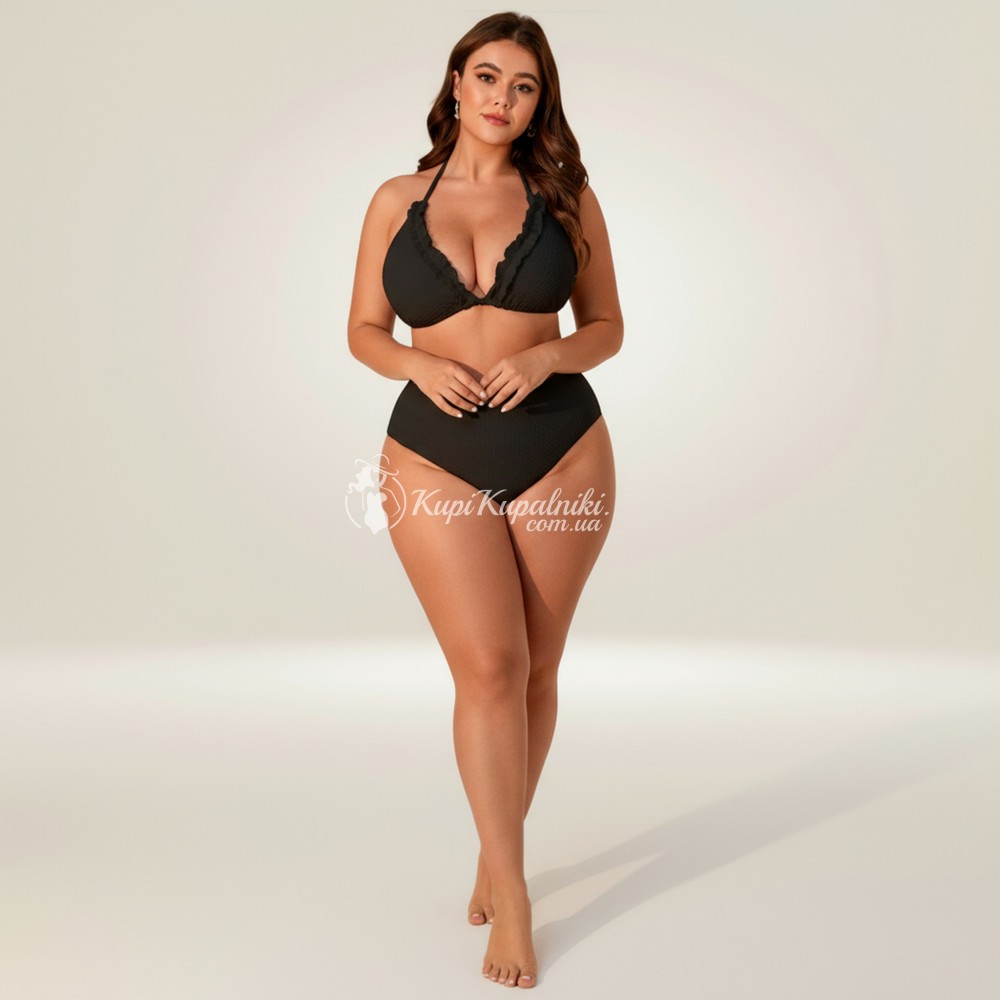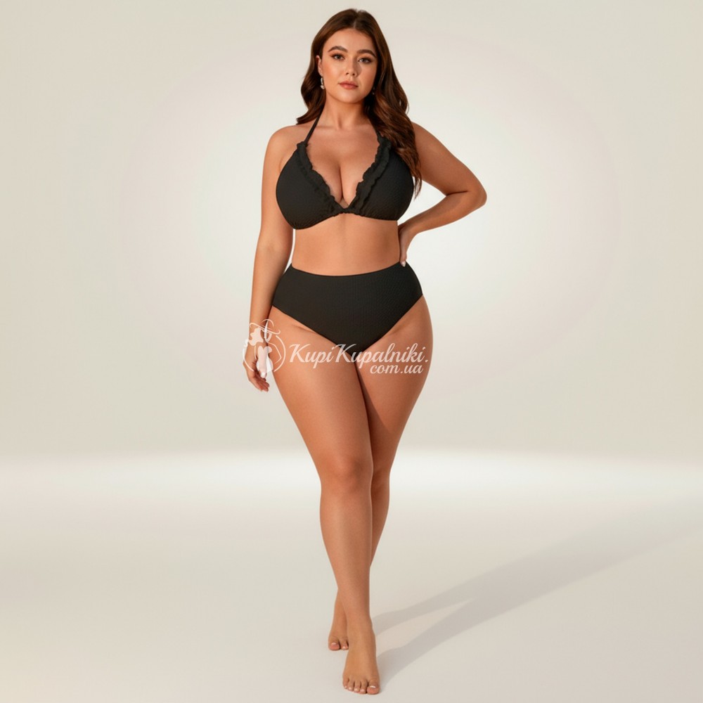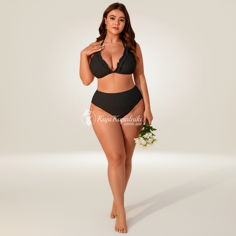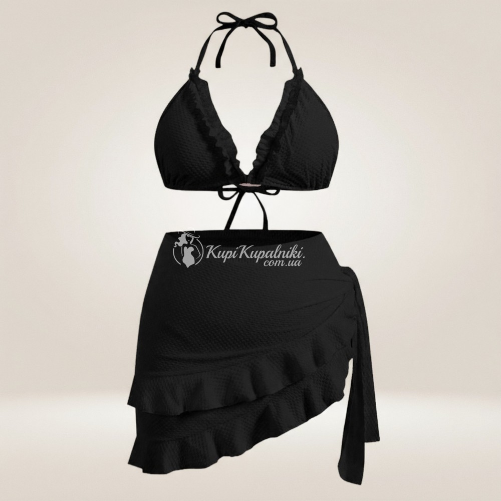 Чорний бікіні Plus Size з воланами та парео-спідницею, висока талія 433-03-2