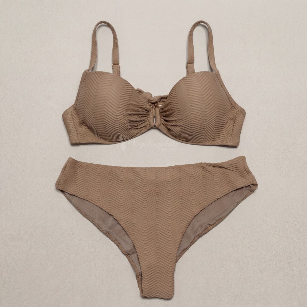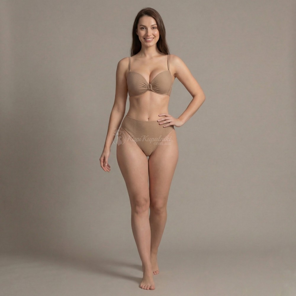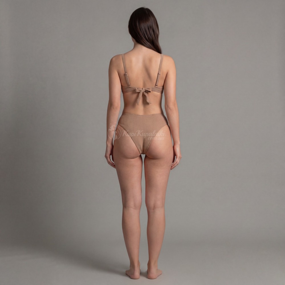 Купальник роздільний бежевий фактурний з чашкою та високою посадкою 702-07