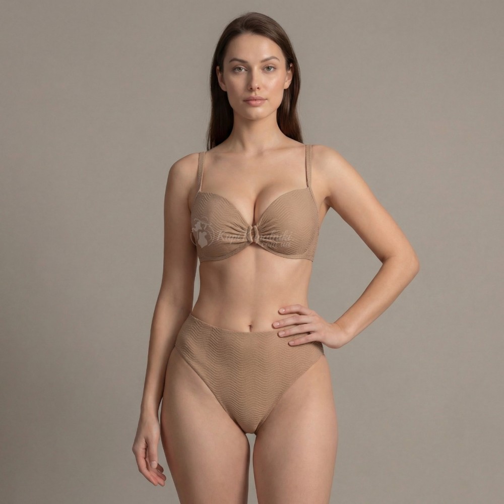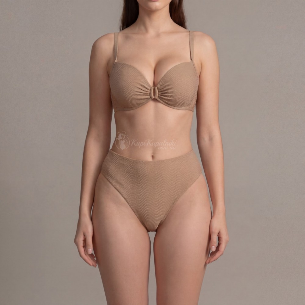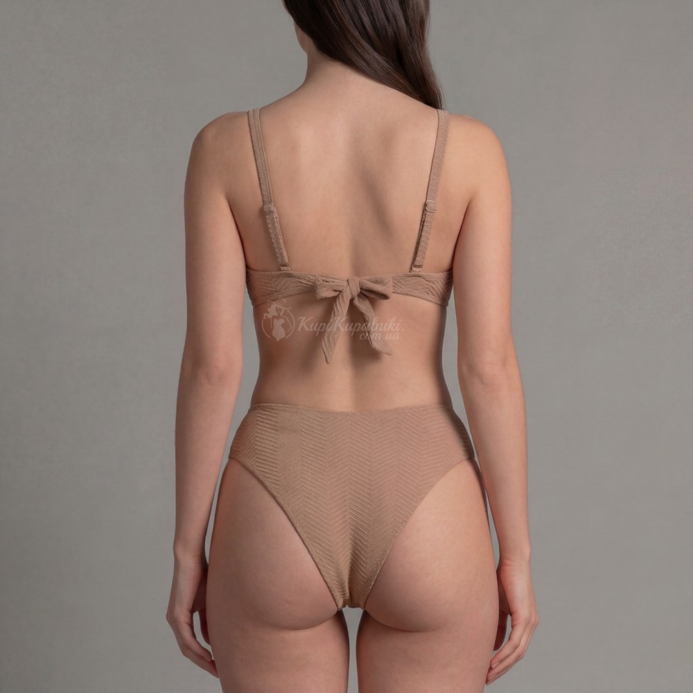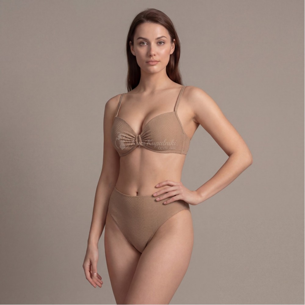 Купальник роздільний бежевий фактурний з чашкою та високою посадкою 702-07