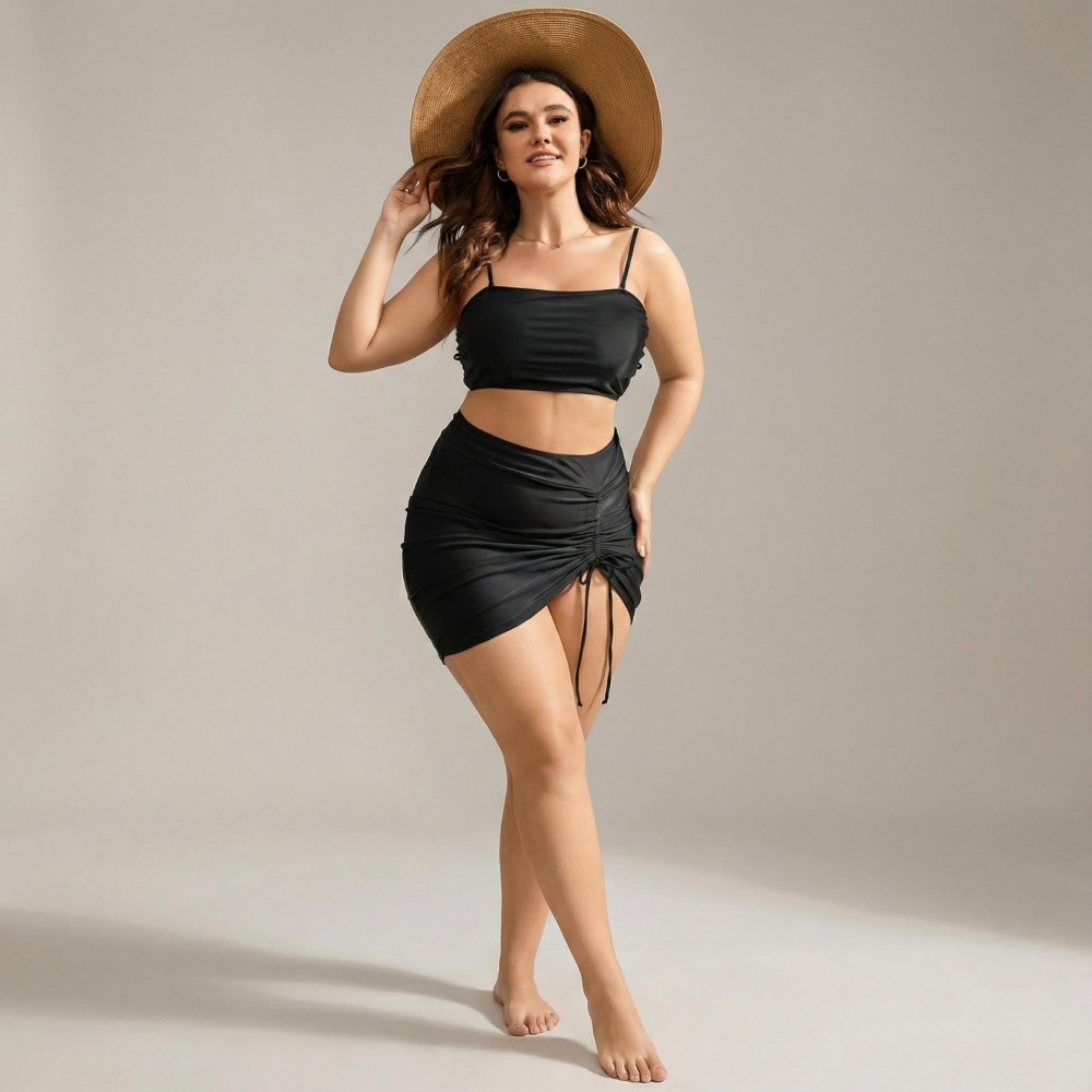 Ці універсальні купальні плавки зі спідницею-драпіруванням у класичному чорному кольорі стануть ідеальним доповненням до будь-якого топа від купальника. Модель із високою талією та широким поясом забезпечує утягуючий ефект, а елегантна спідниця зі збіркою на шнурівці збоку дозволяє регулювати ступінь драпірування та приховує стегна. Плавки під спідницею забезпечують повне покриття і комфорт, а чорний колір візуально стройнить силует.