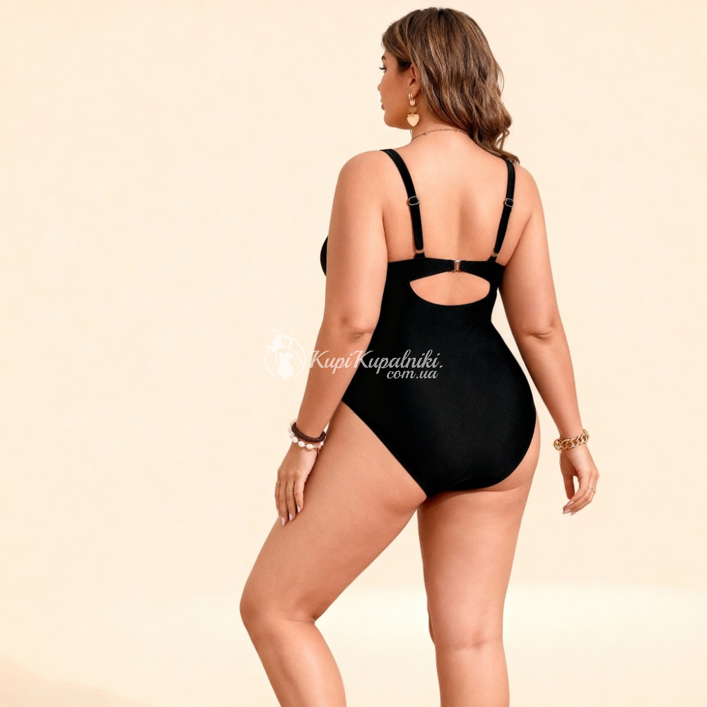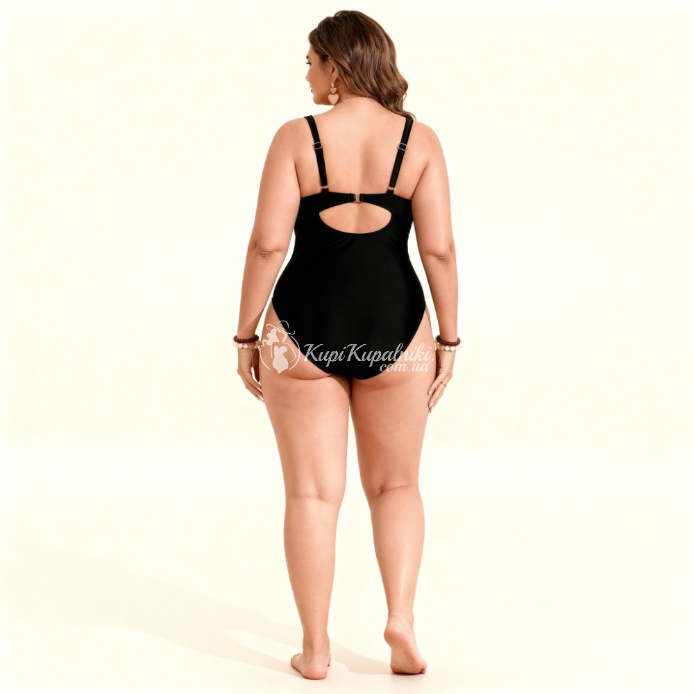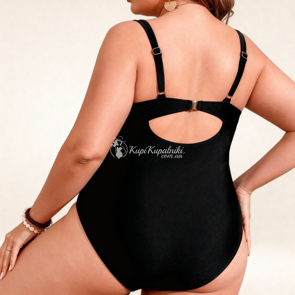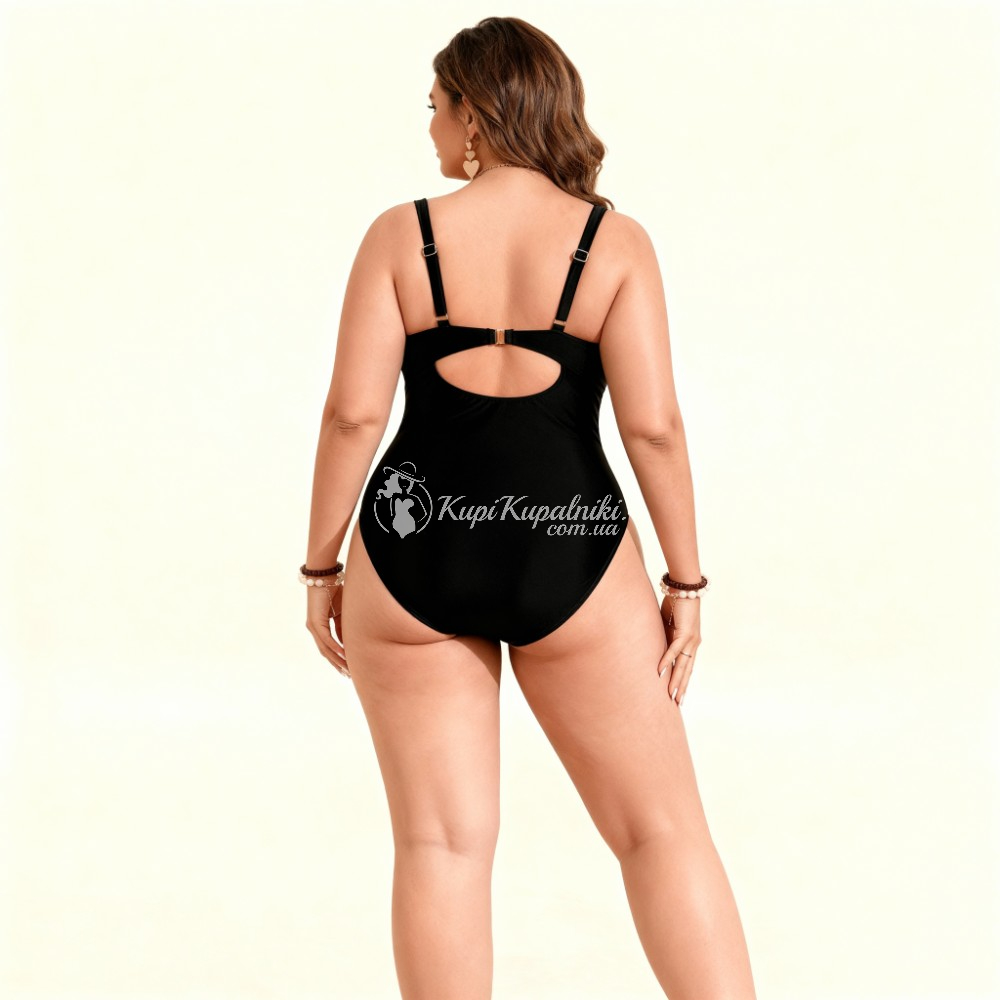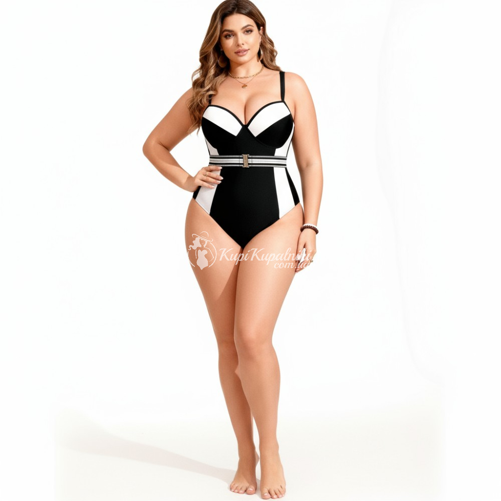 Суцільний купальник Plus Size чорно-білий із підтримкою та поясом 434-06