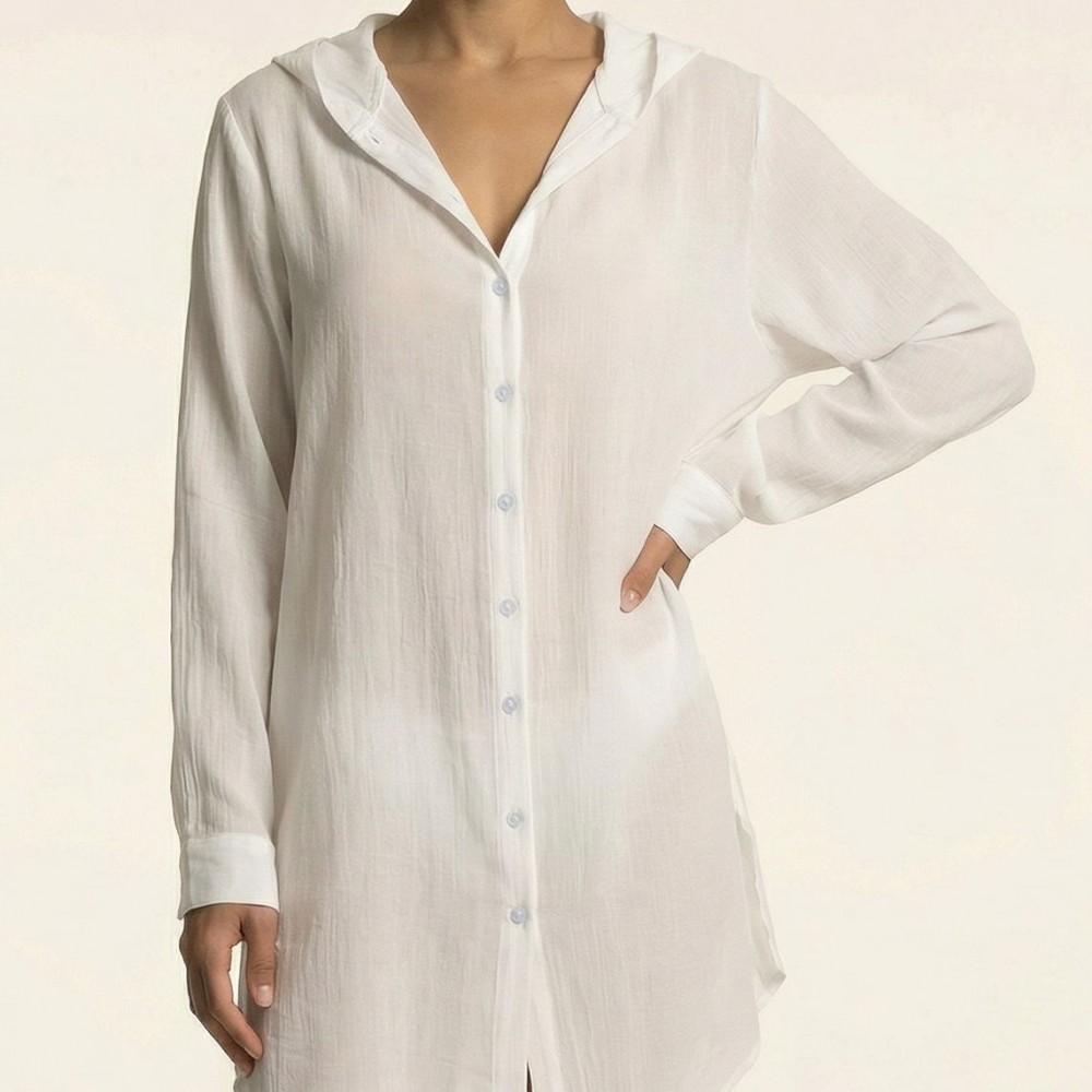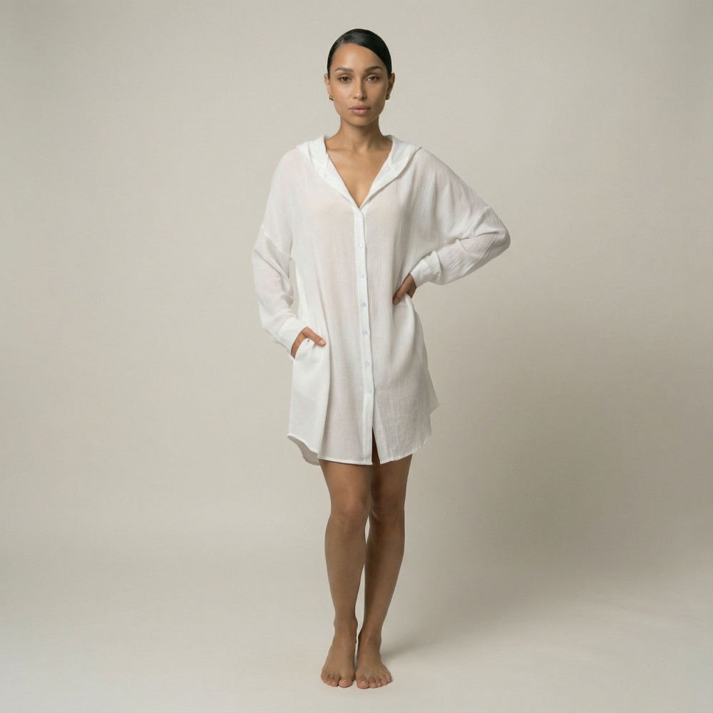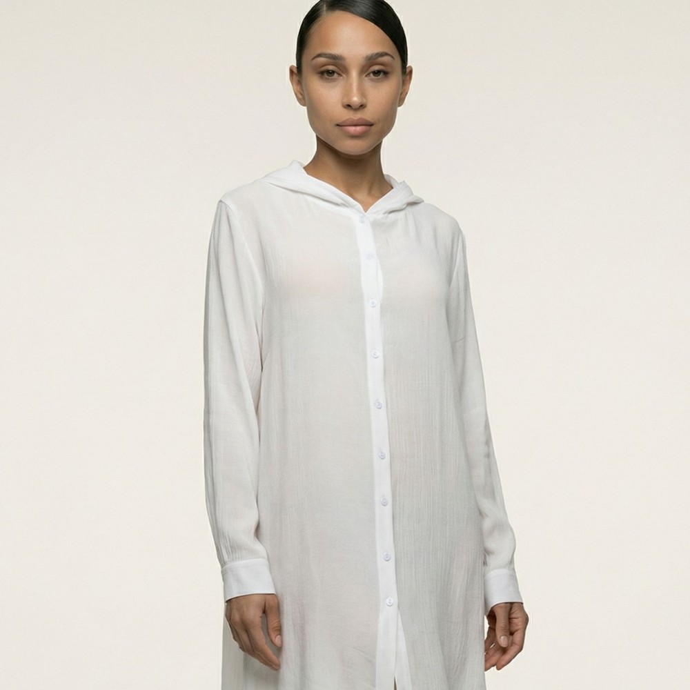 Стильна Туніка-Сорочка з Капюшоном | Легка Пляжна Сорочка | Універсальне Плаття Оверсайз Елегантна білосніжна туніка-сорочка з капюшоном — ідеальне поєднання комфорту та стилю для літнього відпочинку. Натуральна віскоза створює неймовірне відчуття легкості та прохолоди навіть у найспекотнішу погоду, а вільний крій оверсайз забезпечує максимальний комфорт на весь день. Практичний дизайн із застібкою на гудзики та капюшоном робить цю туніку універсальною річчю для пляжу та повсякденного носіння. Характеристики: ✅ Матеріал: натуральний штапель (100% віскоза) ✅ Розмір: One Size (універсальний) ✅ Довжина: середня, вище коліна ✅ Посадка: вільний крій оверсайз ✅ Рукав: довгі рукави з манжетами на гудзиках ✅ Деталі: капюшон, застібка на гудзики по всій довжині, бокові розрізи ✅ Колір: білосніжний Переваги моделі: ✅ Тканина з ефектом прохолоди — ідеальна для спекотної погоди, не паримо тіло ✅ Натуральний склад (100% віскоза) — шкіра дихає та залишається свіжою весь день ✅ Вільна посадка — комфорт для будь-якої фігури, делікатно приховує недоліки силуету ✅ Універсальний розмір — підходить на різні типи фігур ✅ Практичний капюшон — захищає від сонця та додає стилю ✅ Застібка на гудзики — дозволяє носити розстебнутою як накидку або застебнутою як плаття ✅ Легка та невагома — зручно носити весь день та брати в подорож ✅ Рекомендується делікатне прання при 30°C для збереження форми та м'якості тканини Ця туніка-сорочка стане універсальною річчю для літнього гардеробу — носіть як пляжну накидку на купальник, як легке плаття для прогулянок або домашній комфортний халат. Білосніжний колір та вільний крій з капюшоном створюють розслаблений та стильний образ у стилі casual. Код товару: 405-95