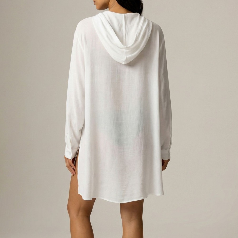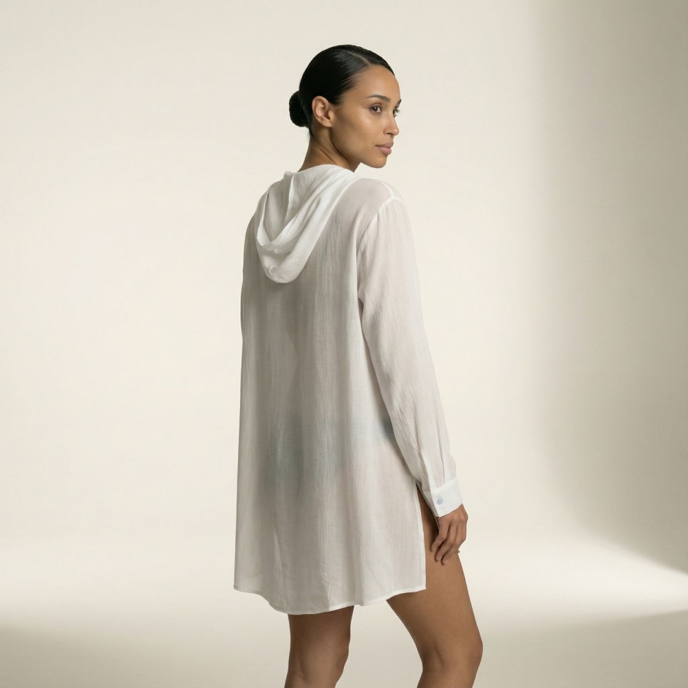 Туніка жіноча пляжна з віскози з капюшоном Біла One Size 405-95-K