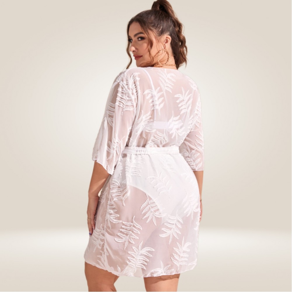 Туніка-Кімоно з Вишивкою | Напівпрозорий Тюль Листя | Ідеальна Накидка на Купальник
