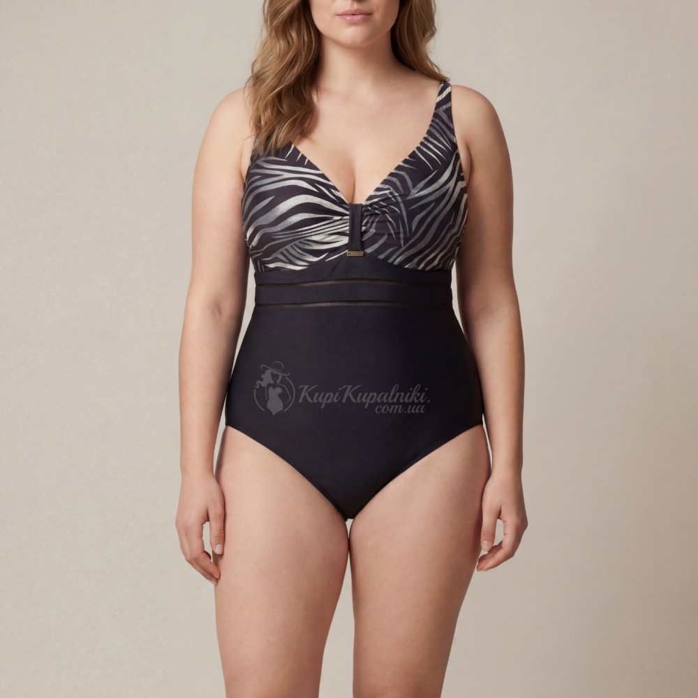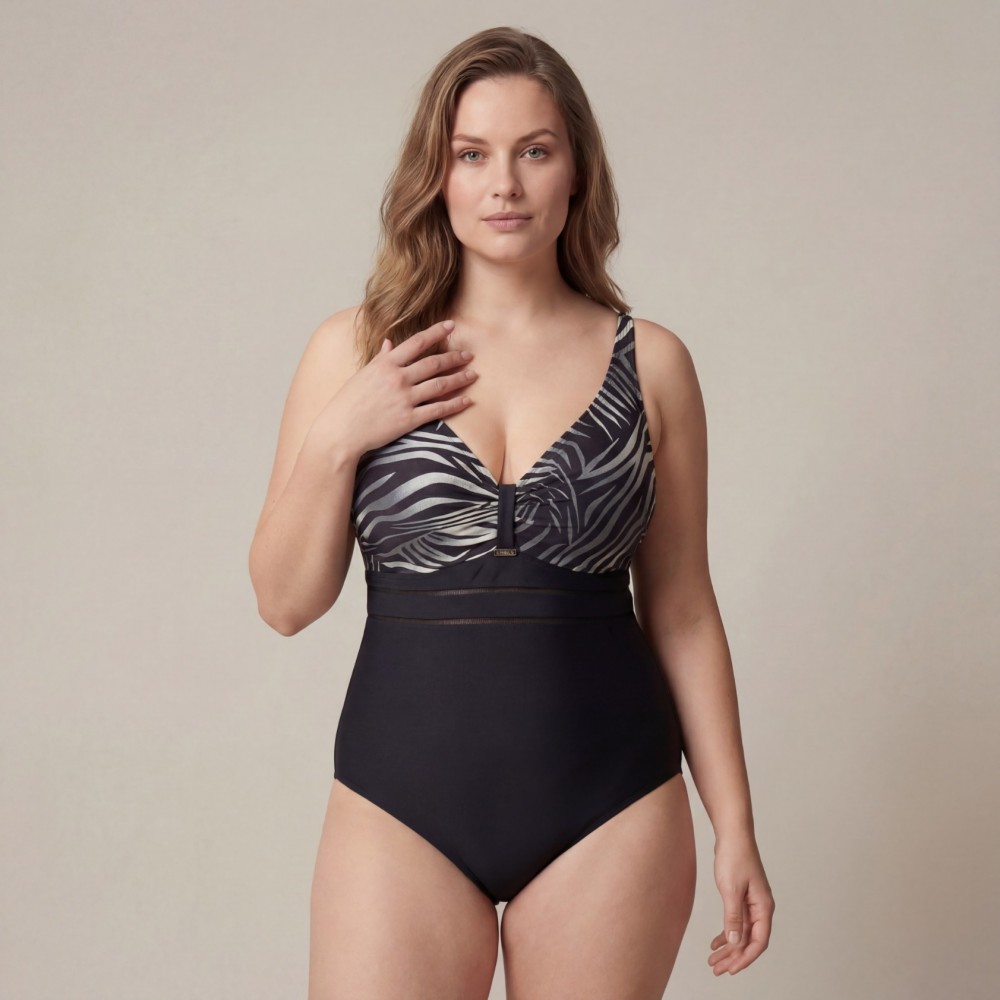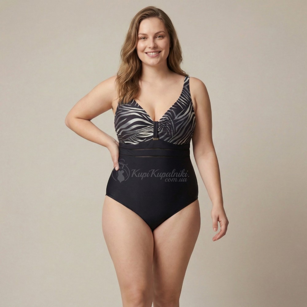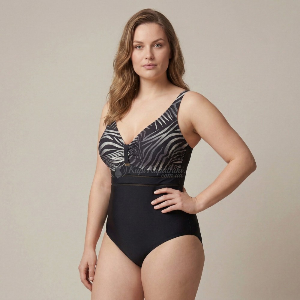 Слитный купальник Plus Size | Чёрный Низ и Принтованный Верх | Эффектный Силуэт и Комфорт
