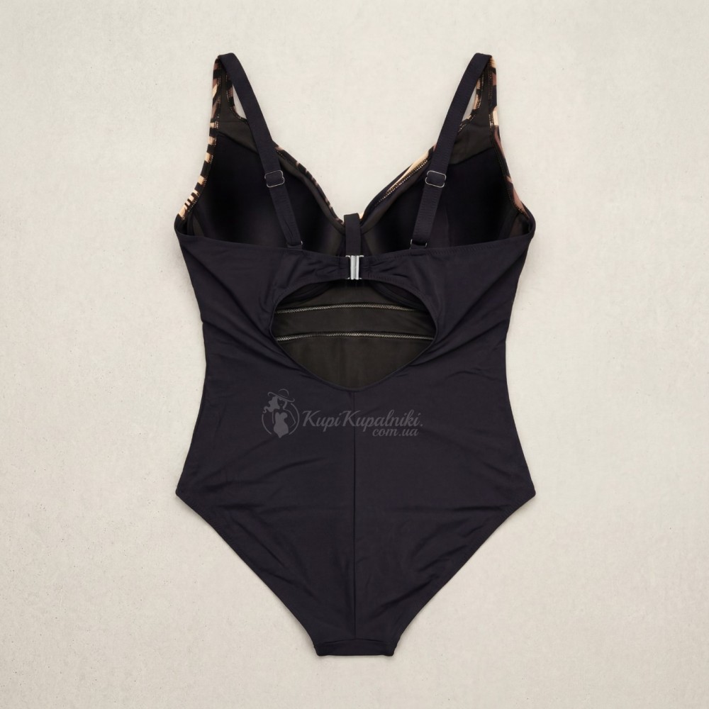 Женский слитный купальник Plus Size чёрный с тёплым зебра-принтом 702-02-3