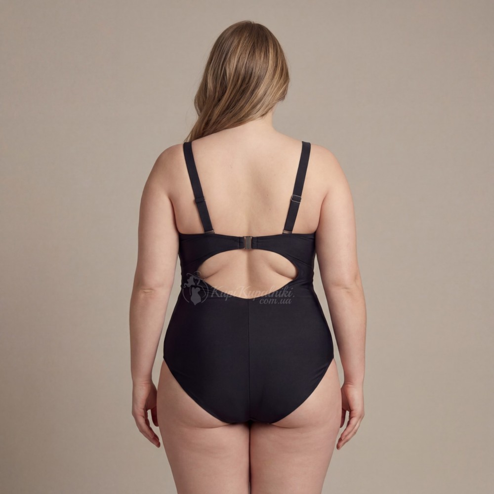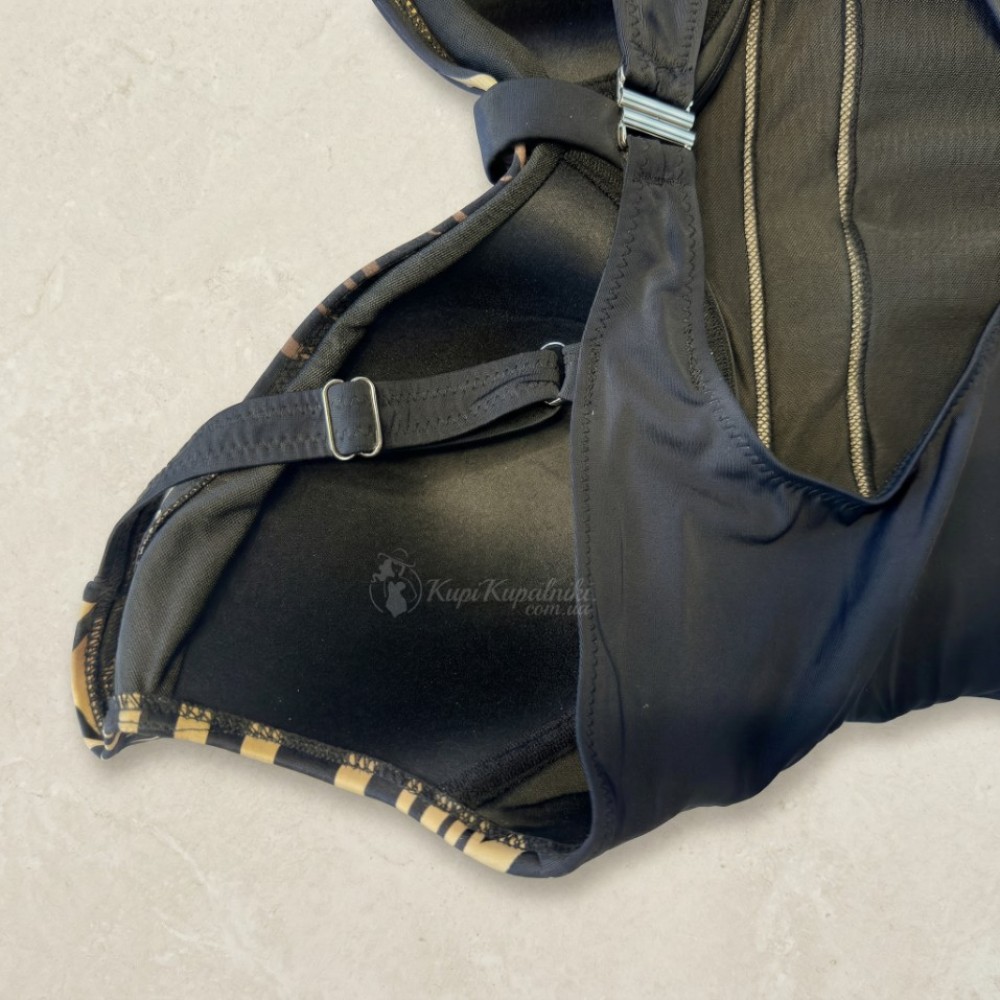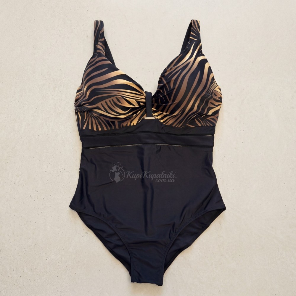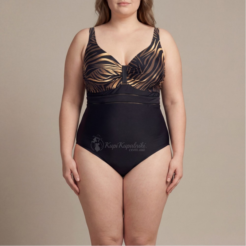 Слитный купальник Plus Size | Тёплый Зебра-Принт | Чёрная Основа и Эффектный Силуэт
