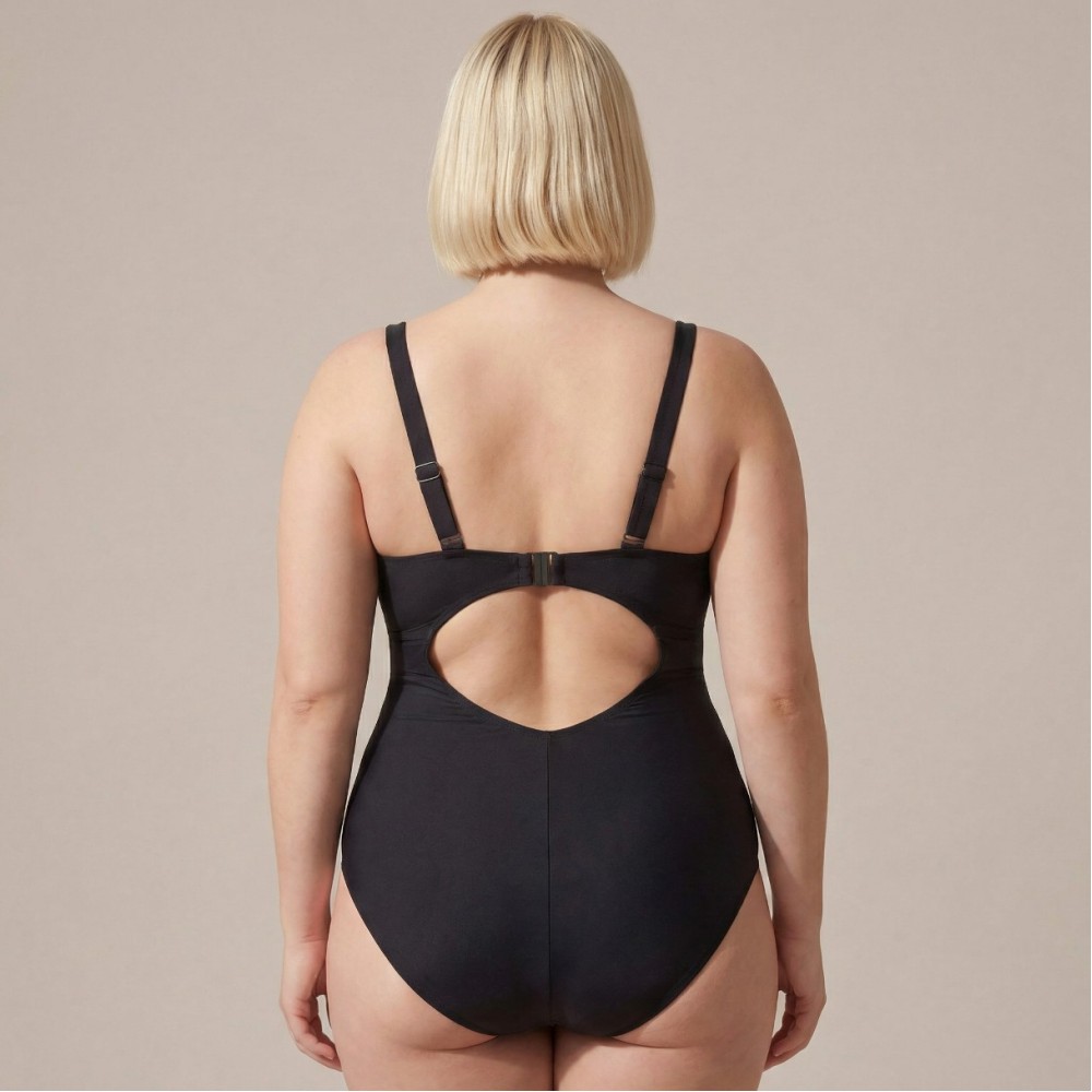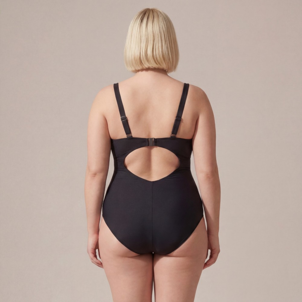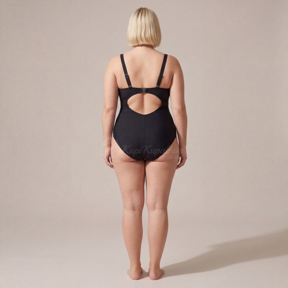 Слитный Чёрный Купальник Plus Size | Мягкая Поддержка Груди | Элегантный Вырез на Спине