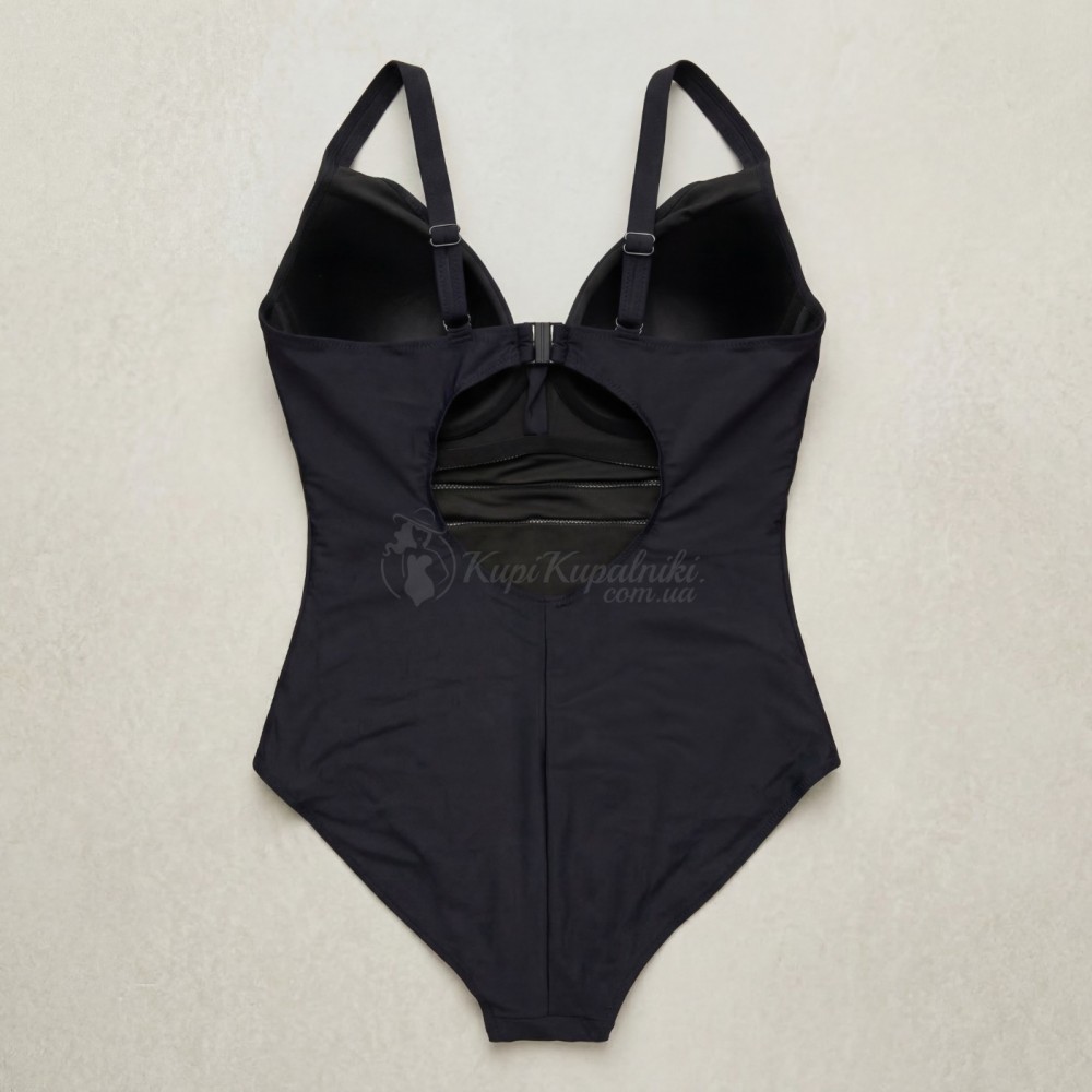 Женский слитный купальник Plus Size чёрный с вырезом на спине 702-05